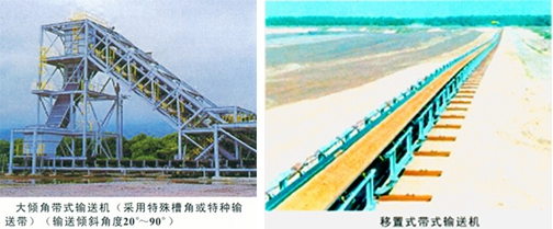 使用於特殊工藝條件下的(de)回轉布料機、移動式膠帶機、伸縮式(shì)帶式輸送(sòng)機、手選帶式輸(shū)送機、可逆配倉(cāng)帶式輸送機、皮帶車等專用(yòng)帶式輸送機械。