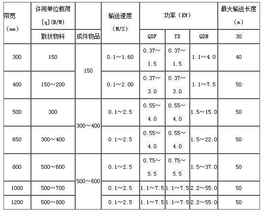 QD型(xíng)輕型帶式輸送機技術性能(néng)表