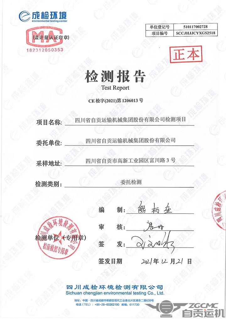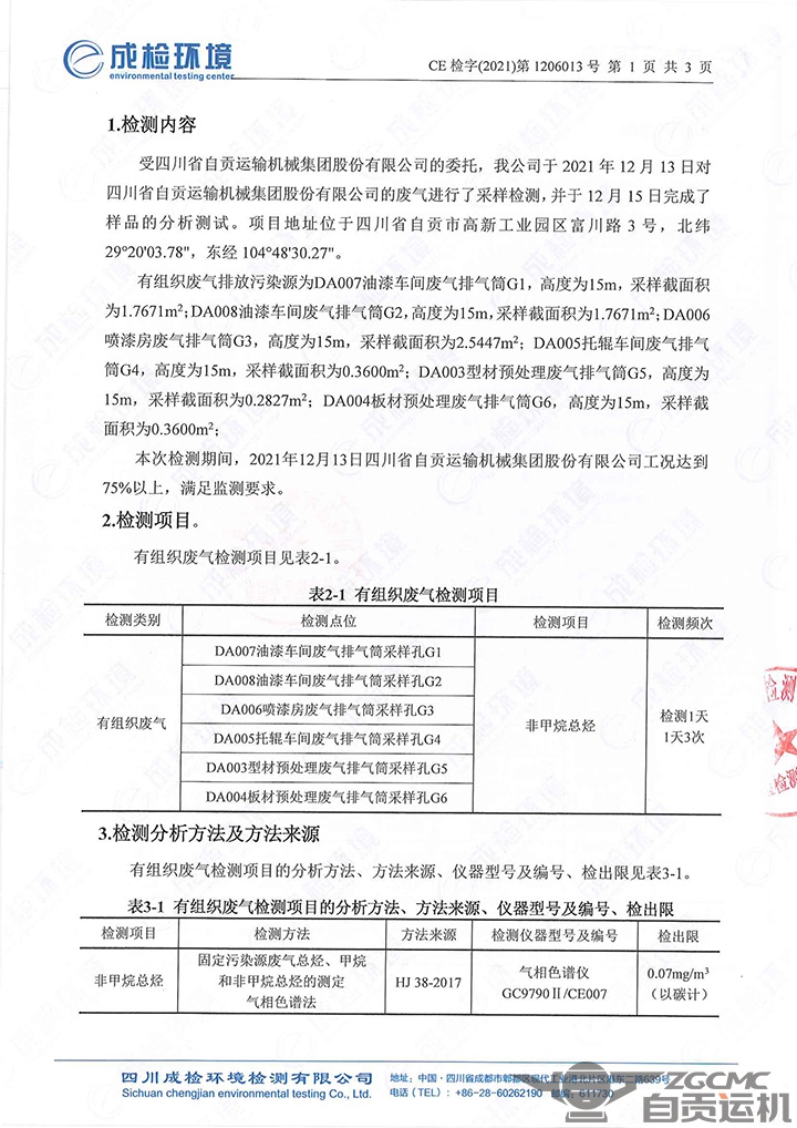 四川(chuān)省自貢運輸機械集團股份有限(xiàn)公司2021年廢氣排放檢測公示公告