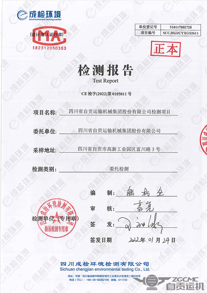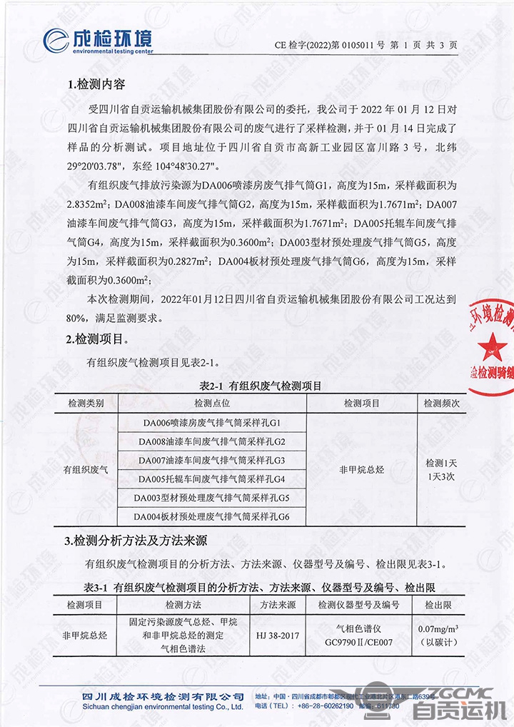 四(sì)川省自貢運輸機械集團股份有限公司2022年廢氣排放檢測(cè)公示公(gōng)告